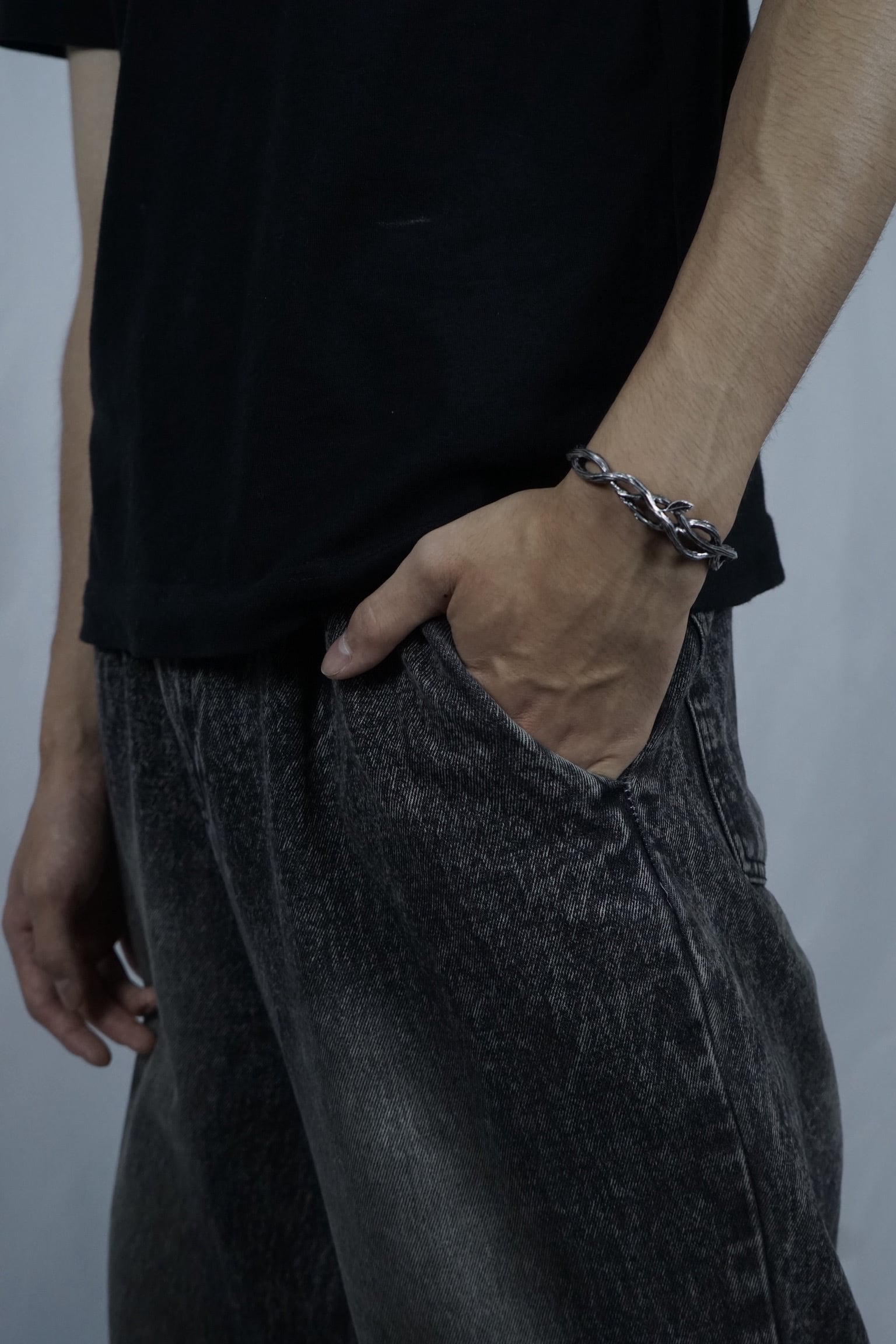 このバングルは、「自然の調和と流れ」を象徴するデザインです。2本の枝がしなやかに絡み合いながら中央で一枚の葉を育む様子は、共生と成長をテーマにしています。無駄のないシルエットの中に、木の質感や年輪のような細やかな彫刻が施されており、時間の積み重ねや生命の軌跡を静かに語ります。力強くも優しいフォルムは、自然体でありながら芯のある人の生き方を映すかのよう。日常にそっと寄り添い、内面の美しさを引き出す一本です。