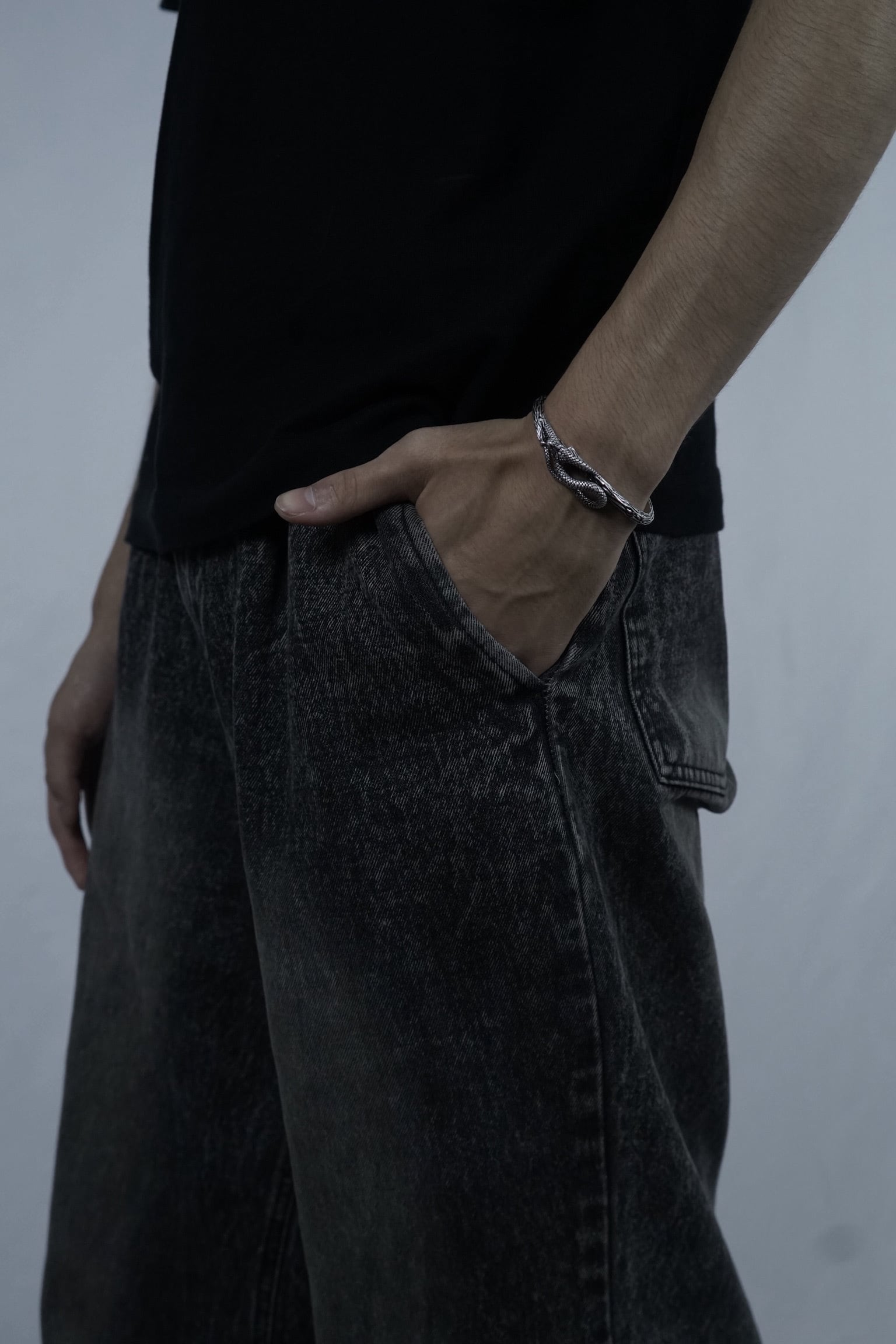このバングルは、「原始の知恵と生命の根源」をテーマにデザインされています。木の枝を模した重厚な土台に、精緻なうろこ模様を持つ蛇が絡みつく造形は、自然界における本能と理性のせめぎ合いを象徴しています。蛇は古代から知恵・変容・再生の象徴として語られてきた存在であり、無骨な枝と繊細な身体の対比が、荒々しさの中に潜む静かな知性を映し出します。身につけることで、己の内にある強さと直感を静かに呼び覚ますような、力強く神秘的な一点です。